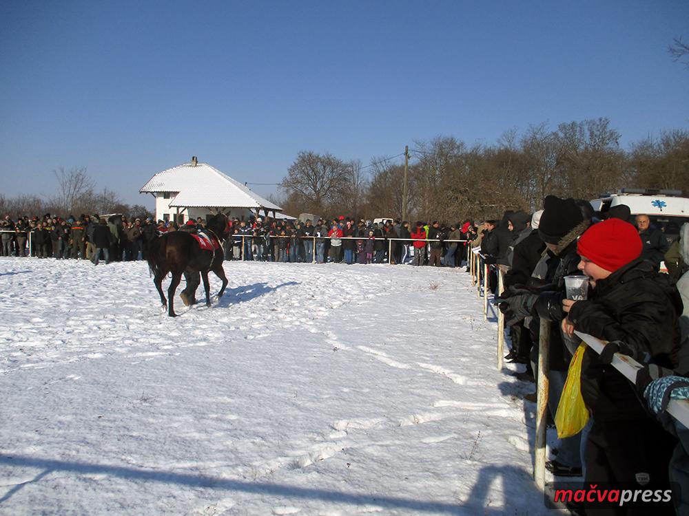 На тринаест степени испод нуле, на хиподрому се окупило око две хиљаде највећих заљубљеника у коњички спорт из Мачве, Срема, Поцерине и Семберије.