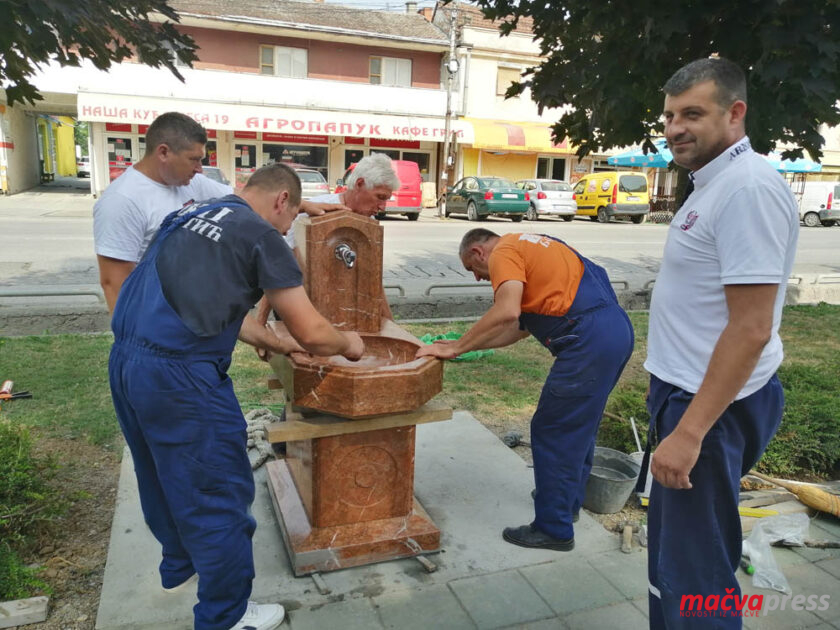 Чесму су јутрос монтирали и пустили у рад радници ЈКП „Богатић“ и предузећа „Гранекс“ у чијој радионици је произведена.