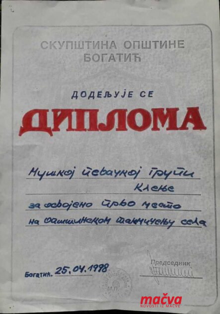 Вокална мушка певачка група из Клења окупљала је најмузикалније певаче и најупорније чуваре музичке традиције Мачве из фамилија Лацковић и Ерцеговчевић