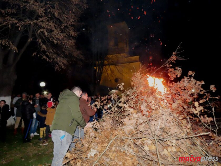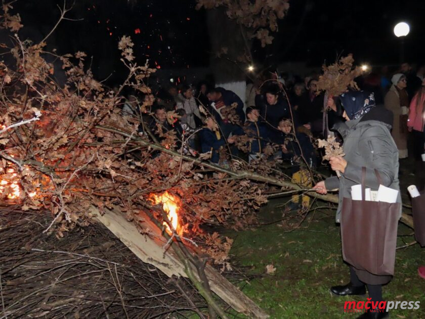 Традиционалним паљењем бадњака испред православних храмова у Мачви верници који славе Божић обележили су Бадње вече.