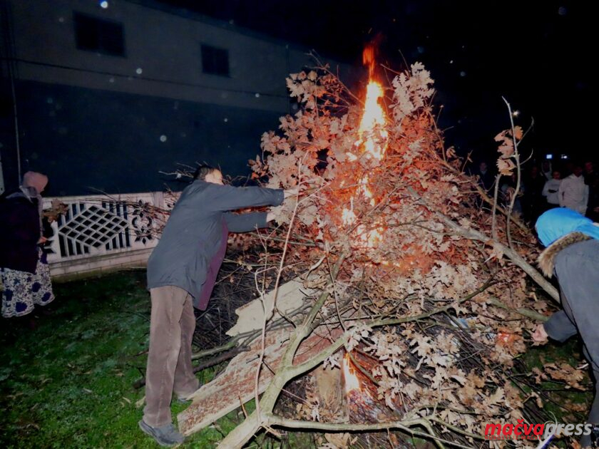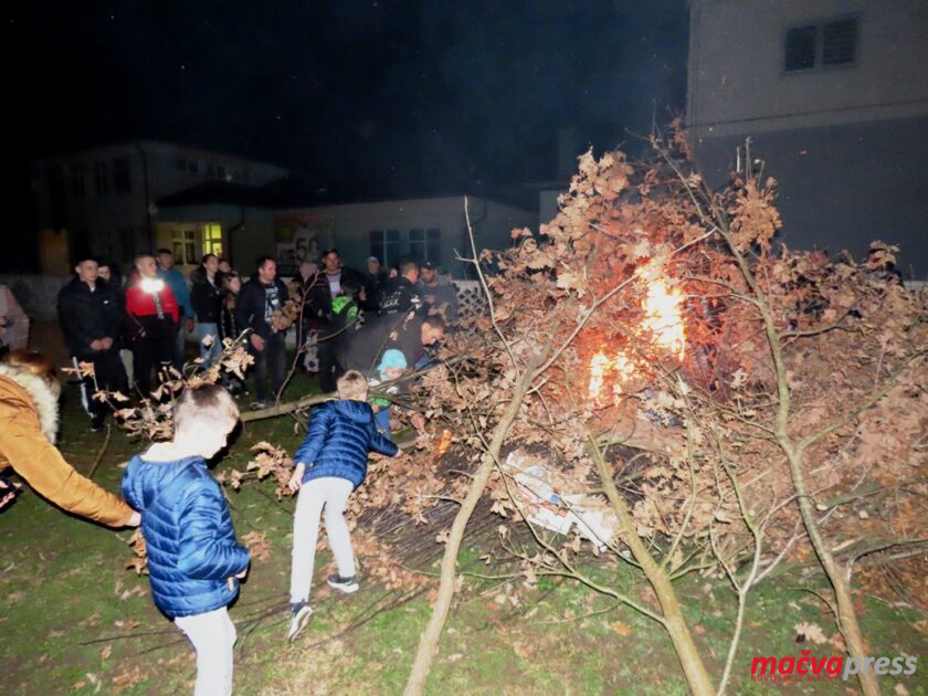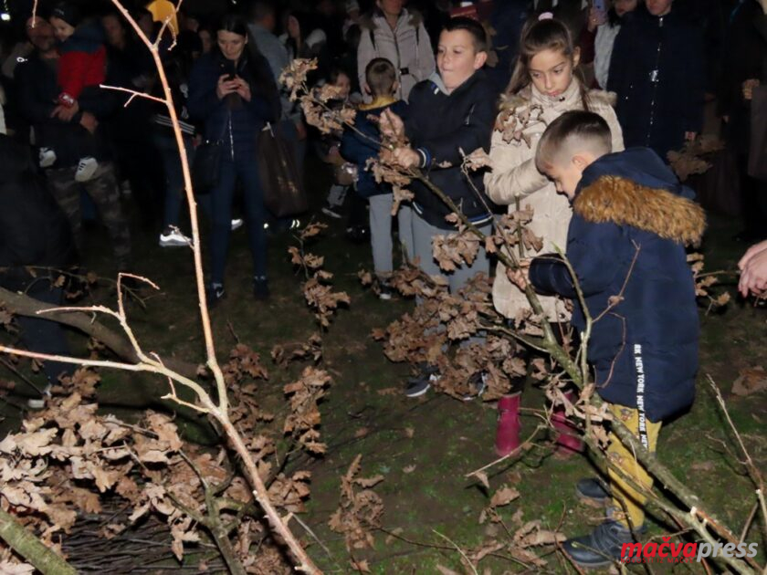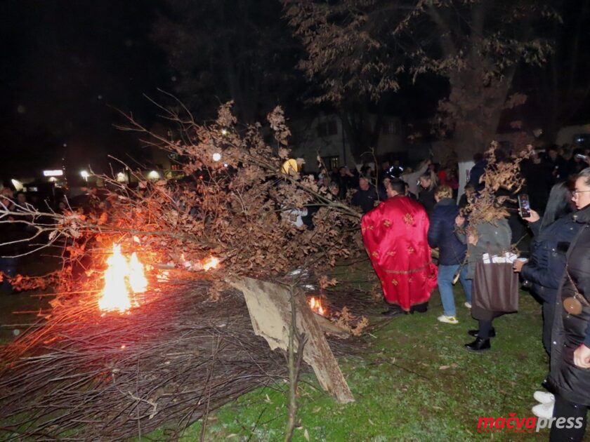 Велики број верника који су присуствовали вечерњој служби присуствовао је паљењу бадњака.