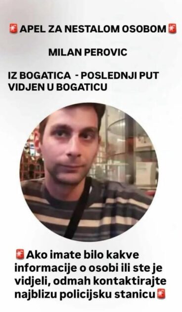 У објави се моле сви који примете Милана да о томе обавесте најближу полицијску станицу. У потрагу ће се укључити и полиција.