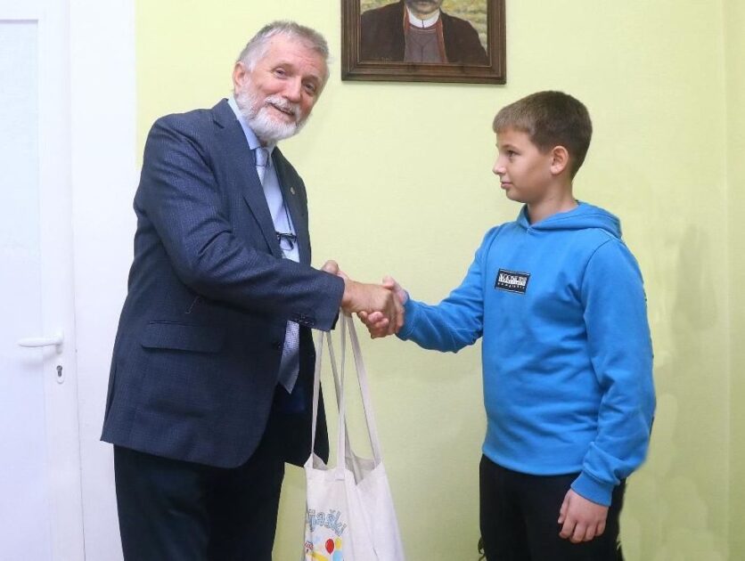 Срећан је био и Андреј када је сазнао да је његов балон прелетео најдужи пут. Своју награду, слаткише, грицкалице и сокове, талентовани фудбалер из Основне школе „Јанко Веселиновић“ поделио је са другарицама и друговима из одељења.