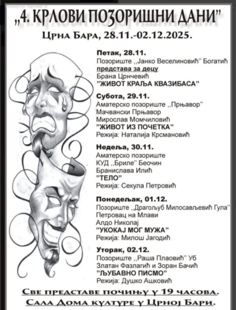 Представом „Живот краља Квазибаса“ АП „Јанко Веселиновић“ из Богатића у петак је у Црној Бари отворен овогодишњи фестивал аматерских позоришта „Крлови позоришни дани“.