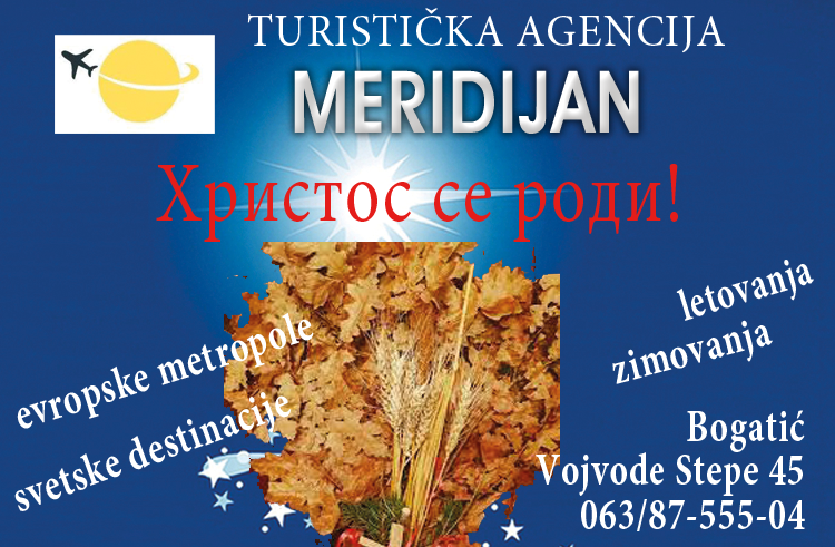 ТУРИСТИЧКА АГЕНЦИЈА „МЕРИДИЈАН“ БОГАТИЋ: ЧЕСТИТАМО БОЖИЋ!