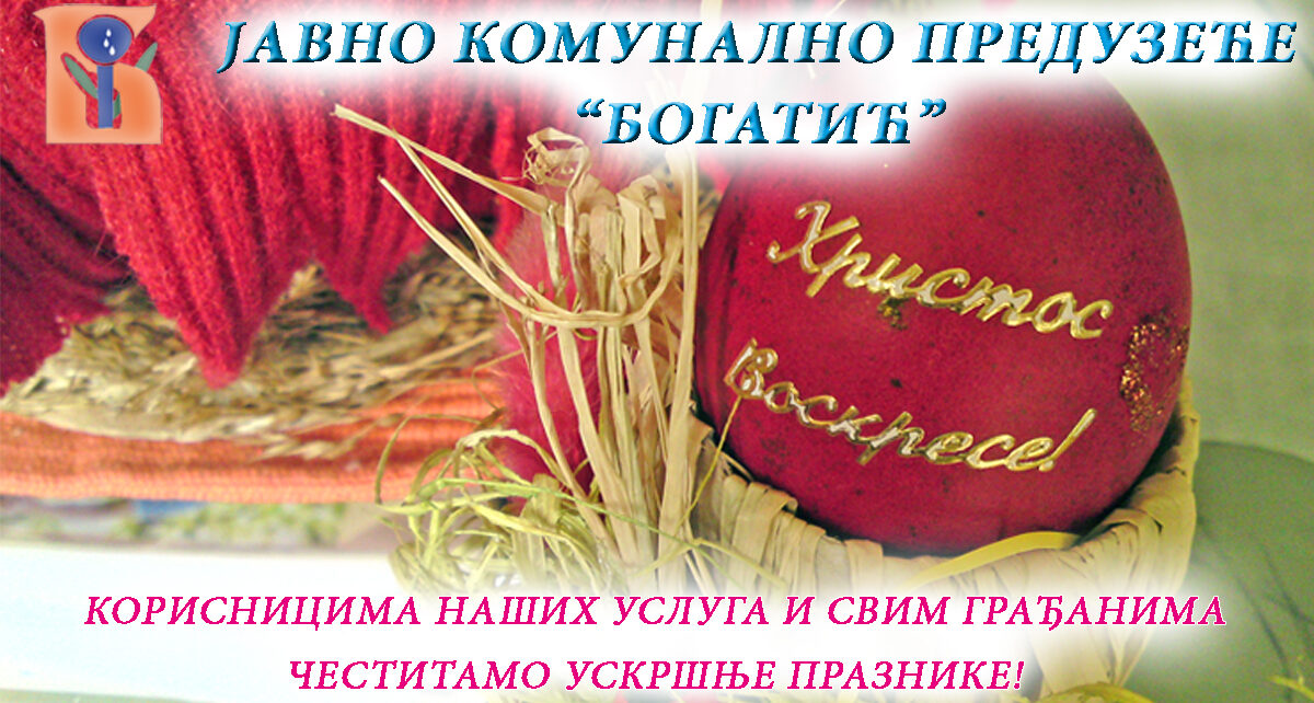ЈКП „Богатић“ честита Ускрс свим корисницима својих услуга и грађанима општине Богатић. Христос васкрсе! Related Images: